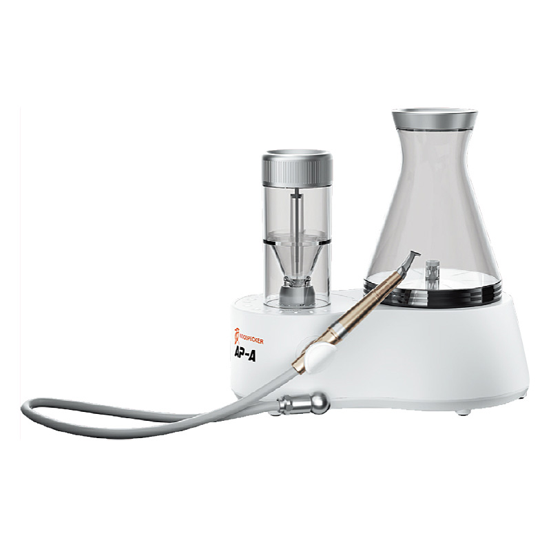 こちらは歯科医院で使用するパウダークリーニング用の新商品!お客様から要望の多いパウダークリーニング機能のみの機種が新登場!コンパクトヘッド&軽量ハンドピースで大臼歯舌側遠心にもストレスなく届きます。根尖方向には水のみ、側面3方向からはパウダーと エアーが噴射するのでマイルドに歯肉縁下にアプローチ!