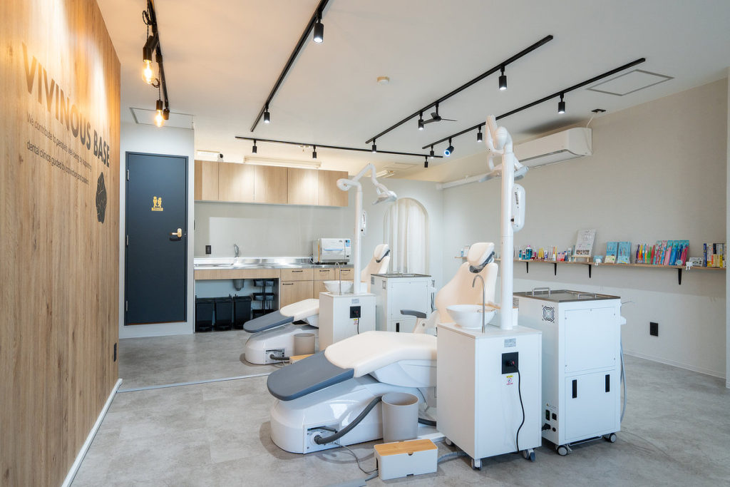 浅野 歯科医院に訪問しての研修となりますと、研修のためにユニットを空けなければいけないケースが多く、動けるスタッフさんがいても患者さんのアポイントをカットすることになってしまいます。別に研修施設があれば、先生方もそういったことで困ることもありませんし、私自身の移動時間も少なくなりますので、思い切って自分で作ってしまおうと、昨年11月にVIVINOUS BASEというラーニングスペースをオープンしました。相互実習ができるようにユニット2台と基本的な器具を備えていますし、消毒滅菌もできるようシンクやオートクレーブも設置しています。また、8名まで座学ができるセミナーブースも用意しました。