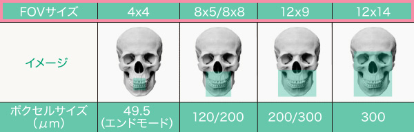 CT撮影では、症例に応じてFOV(Field of View:撮影範囲)を設定します。「Green X 12」では7種類のFOVから診断目的に合わせ最適な選択ができます。